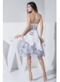 Gorgeous is the word written all over this dress. A fitted, strapless bodice made of an all-over sequin accenting the sweetheart neckline. Featured with short styles and high quality taffeta and organza materials, this dress is the right choice for one who want to enjoy a fantastic party. Grey color and bowknot add the charm. Easy fitting from the lace up back.
