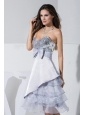 Sequin Bowknot Ruffled Decorate Bodice Sweetheart Neckline Grey Tea-length Prom Dress
