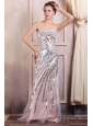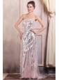 Sequined Champagne Column Sweetheart Prom Dress with Brush Train