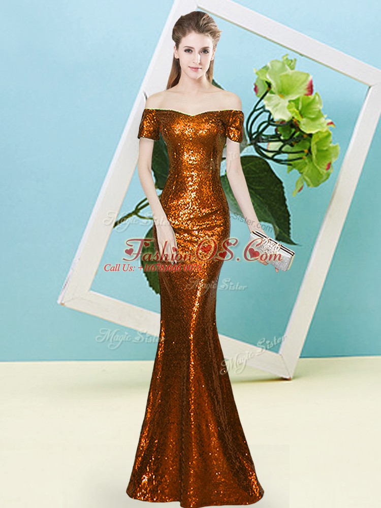 Sequined Short Sleeves Floor Length Evening Dress and Sequins