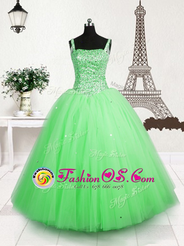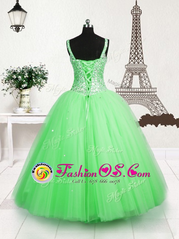 Home >  Special Occasion Dresses >  New Style Little Girl Pageant Dresses > Sequins Ball Gowns Little Girls Pageant Gowns Apple Green Straps Tulle Sleeveless Floor Length Lace Up