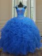 Home >  Quinceanera Dresses >  Popular Quinceanera Dresses > Sequins Floor Length Ball Gowns Cap Sleeves Royal Blue Ball Gown Prom Dress Lace Up
