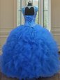 Sequins Floor Length Ball Gowns Cap Sleeves Royal Blue Ball Gown Prom Dress Lace Up