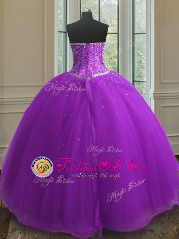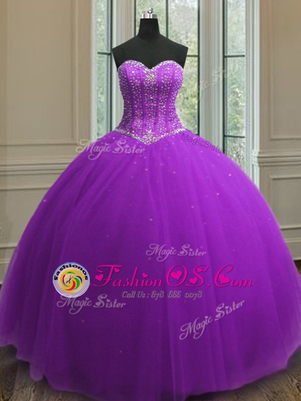 Home >  Quinceanera Dresses >  In Stock Quinceanera Dresses > Sequins Floor Length Ball Gowns Sleeveless Purple 15th Birthday Dress Lace Up