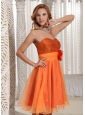 You are ready for the red carpet when you arrive in this amazing prom dress. An amazing short dress for prom or formal features a bust a sweetheart neckline and a stunning bodice adorned with sequins throughout. A big floral accent on the ruched waistband and a flowy skirt add beauty and grace to the dress. You are sure to love this gorgeous dress.