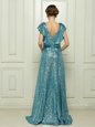 Sequins Teal Sleeveless Sequined Zipper Prom Evening Gown for Prom and Party
