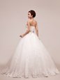 Home >  Wedding Dresses >  Perfect Wedding Dresses > Sequins Tulle and Lace Sleeveless Floor Length Wedding Dresses and Lace and Appliques and Ruching and Belt