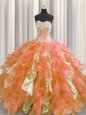 Sequins Visible Boning Floor Length Multi-color Quinceanera Gown Sweetheart Sleeveless Lace Up