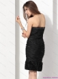 Sexy 2015 Strapless Black Prom Dress with Hand Made Flowers and Ruching