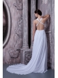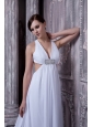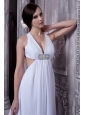 Sexy A-line V-neck Prom Dress Chiffon Beading Court Train