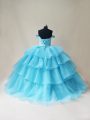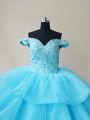 Sexy Aqua Blue Lace Up Off The Shoulder Beading and Ruffled Layers Quince Ball Gowns Organza and Tulle Sleeveless