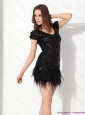 Sexy Black Mini Length Prom Dress with Sequins and Macrame