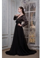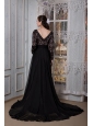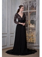 Sexy Black Mother Of The Bride Dress A-line V-neck  Chiffon Beading Court Train