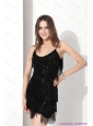 Sexy Black Sequins Mini Length Prom Dresses with Macrame