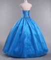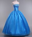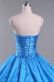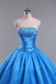 Sexy Blue Strapless Lace Up Beading Quince Ball Gowns Sleeveless