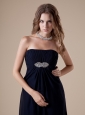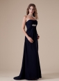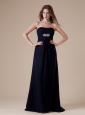 Home >  Prom Dresses >  Popular Prom Dresses > Sexy Brush Train Ruch and Beaded Decorate Prom Dress With Strapless Neckline Navy Blue Chiffon