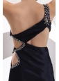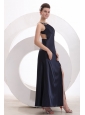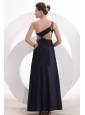 Sexy Column One Shoulder Ankle-length Beading Navy Blue Prom Dress with Criss Cross