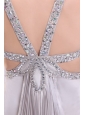Sexy Column V neck Grey Watteau Train Beading Elastic Woven Satin Prom Dress with Criss Cross