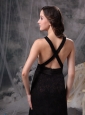 The simple dress can also leave a lastlong and impressive memory at your party, this black one is the perfect example. The V-neck style bodice in lace pattern is so gorgeous and glamorous. The chic belt shows your natural waistline obviously, while the wide straps cross in the back to reveal your beauty of skin. The lace pattern skirt flows straightly to the floor to curve your slim figure and a zipper up completes this stunning design.