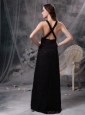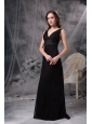 Home >  Prom Dresses >  Unique Prom Dresses > Sexy Column V-neck Little Black Dress Lace Belt and Ruch Floor-length