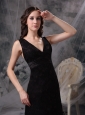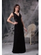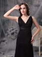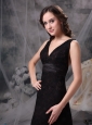 Sexy Column V-neck Little Black Dress Lace Belt and Ruch Floor-length