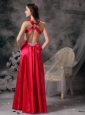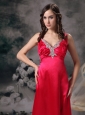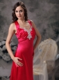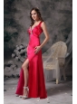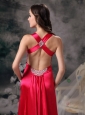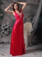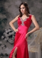 Sexy Coral Red Evening Dress Column V-neck  Elastic Woven Satin Beading and Ruch Floor-length