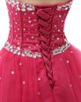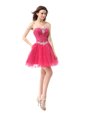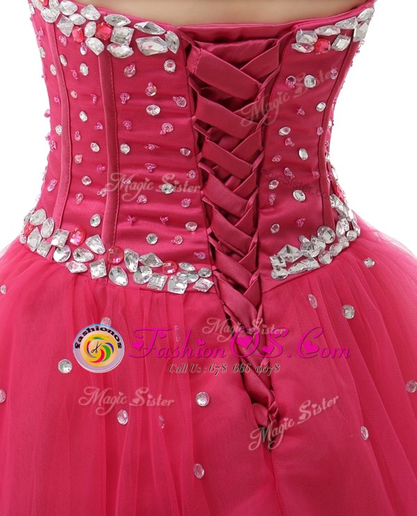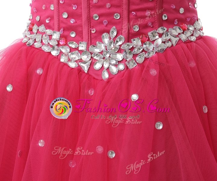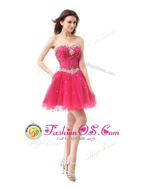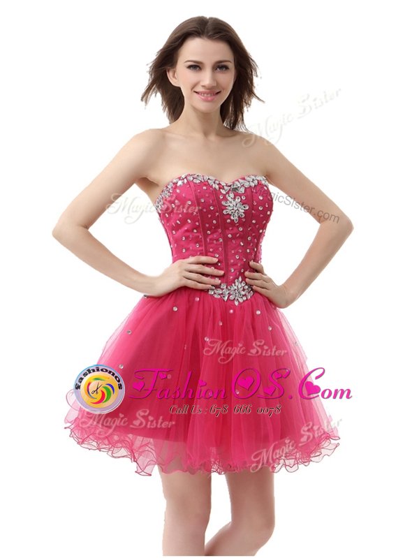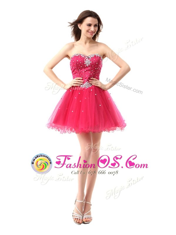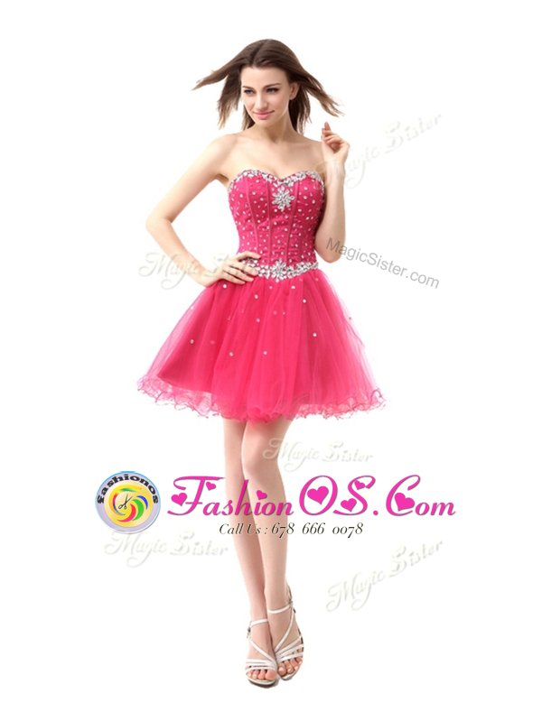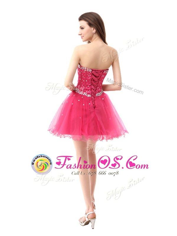 Sexy Coral Red Organza Lace Up Prom Dress Sleeveless Knee Length Beading