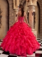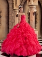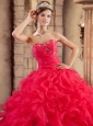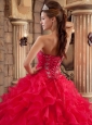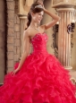 Sexy Coral Red Quinceanera Dress Sweetheart Ruffles Organza Ball Gown