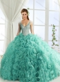 Sexy Deep V Neck Mint Detachable Quinceanera Skirt with Beading and Appliques
