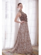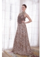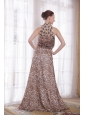 Home >  Prom Dresses >  Discount Prom Dresses > Sexy Empire High-neck Brush Train Leopard Beading Prom Dress
