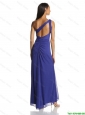 Sexy Empire One Shoulder Ankle Length Chiffon Prom Dresses in Blue 2016