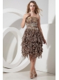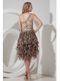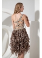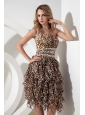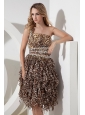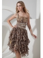 Sexy Empire One Shoulder Beading Short Prom Dress Tea-length Leopard