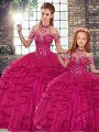 Sexy Floor Length Ball Gowns Sleeveless Fuchsia Quinceanera Dresses Lace Up