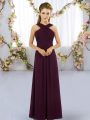 Sexy Floor Length Burgundy Bridesmaid Dresses Chiffon Sleeveless Ruching