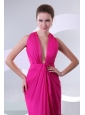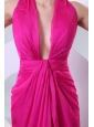 Sexy Fuchsia Column V-neck Criss-cross Prom Dress with Ruche