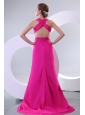 Home >  Prom Dresses >  Sexy Prom Dresses > Sexy Fuchsia Column V-neck Criss-cross Prom Dress with Ruche