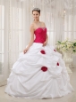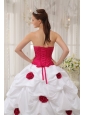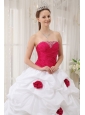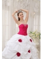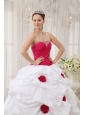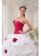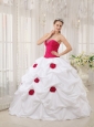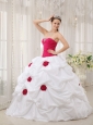 Home >  Quinceanera Dresses >  Unique Quinceanera Dresses > Sexy Hot Pink and White Quinceanera Dress Strapless Taffeta Hand Made Flower Ball Gown