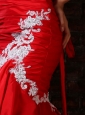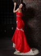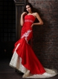 Home >  Prom Dresses >  Unique Prom Dresses > Sexy Mermaid Strapless Brush Train Red Appliques Prom Dress with Lace Up
