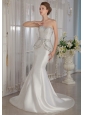 Sexy Mermaid / Trumpet Sweetheart Court Train Satin Beading Wedding Dress