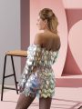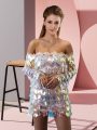 Sexy Mini Length Silver Off The Shoulder Long Sleeves