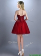 Sexy New Arrivals Laced Mini Length Prom Dresses  in Wine Red