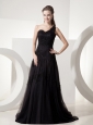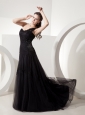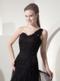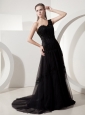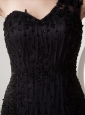 Black color is one of the best color to show your charming. This prom dress is just the example. The fitted bodice with one shoulder is adorned with lovely wrapped beaded appliques and exquisite ruchings.The floor-length skirt in stunning sheer tulle fabric flows freely to define your slim figure and the black beaded appliques highlight the skirt. A hidden zipper makes for easy off and on and secures the dress in place. You will surely be the most popular one in the prom.