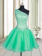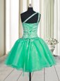 Sexy One Shoulder Mini Length Lace Up Prom Dresses Turquoise and In for Prom and Party with Beading