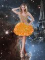 Home >  Quinceanera Dresses >  Detachable Quinceanera Skirts > Sexy Orange Ball Gowns Organza Sweetheart Sleeveless Beading and Ruffles Floor Length Lace Up 15 Quinceanera Dress