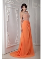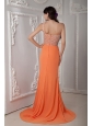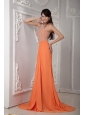 Sexy Orange Column One Shoulder Brush Train Chiffon Beading Evening Dress