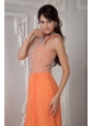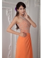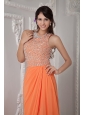 Home >  Evening Dresses > Sexy Orange Column One Shoulder Brush Train Chiffon Beading Evening Dress
