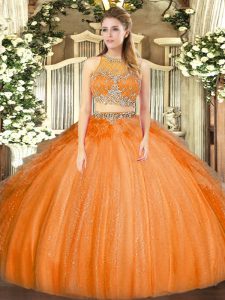 Home >  Quinceanera Dresses >  Pretty Quinceanera Dresses > Sexy Orange Tulle Zipper Scoop Sleeveless Floor Length 15th Birthday Dress Beading