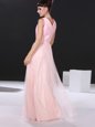 Home >  Prom Dresses >  Junior Prom Dresses > Sexy Pink Column/Sheath Organza V-neck Sleeveless Beading and Ruching Floor Length Side Zipper Dress for Prom