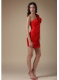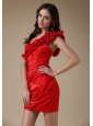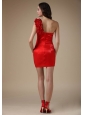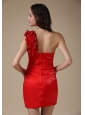 Sexy Red Column One Shoulder Cocktail Dress Elastic Woven Satin Hand Made Flower and Ruch Mini-length