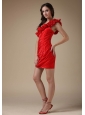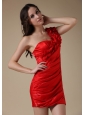 Home >  Special Occasion Dresses >  Cocktail Dresses > Sexy Red Column One Shoulder Cocktail Dress Elastic Woven Satin Hand Made Flower and Ruch Mini-length